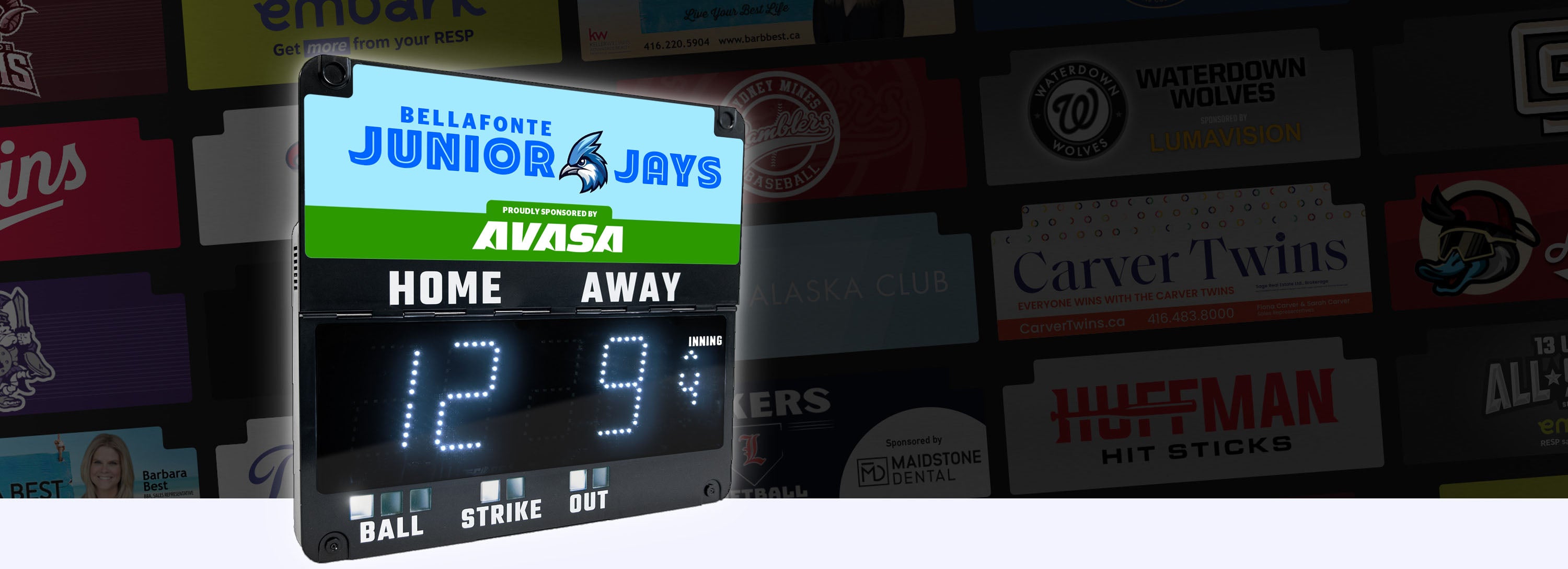 Showcase your team or sponsor branding with a scoreboard that turns heads at every game.